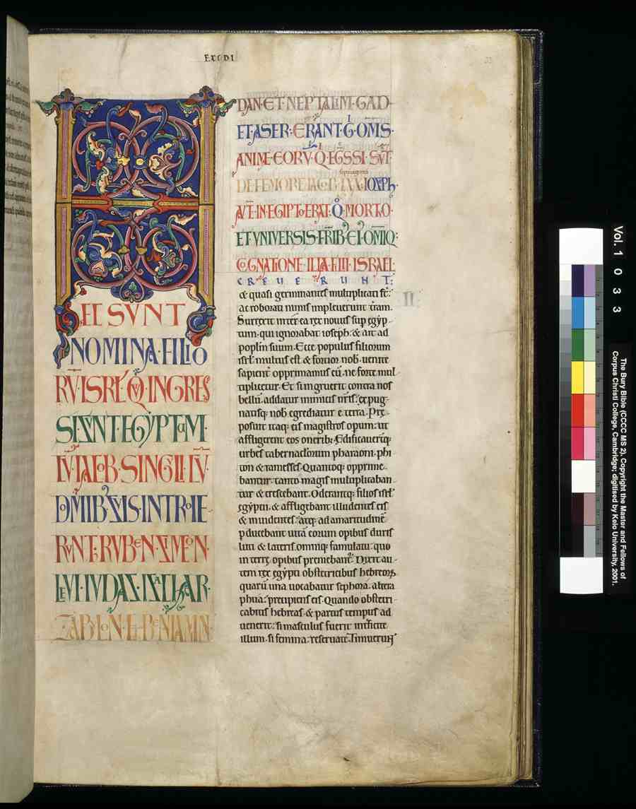 Cambridge. This picture gallery includes all the illuminated letters surviving from the Bury Bible. It does not include the hundreds of text only pages. More information is available in Moyses Hall Museum All images were digitised by Keio University at the Parker Library in 2001. |