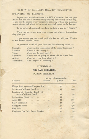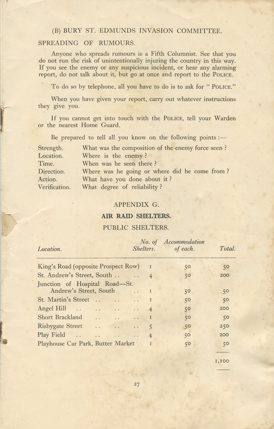 Page 27, Reporting enemy activity, Air Raid Shelter locations |