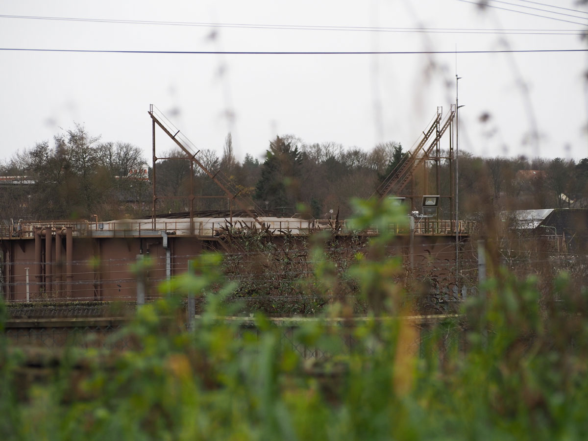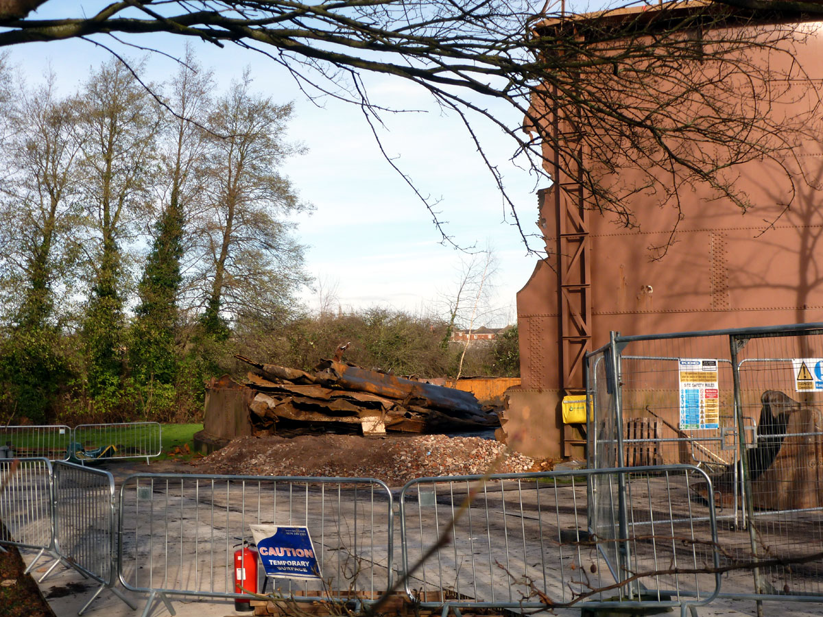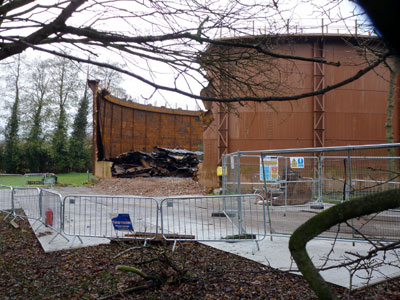 Although much of the inside and unseen skins have been removed, the outer skin still looked like this through the main site gates. Note, however, that the previously upstanding access ladders have been removed. (Picture dated 6th January, 2016.) |