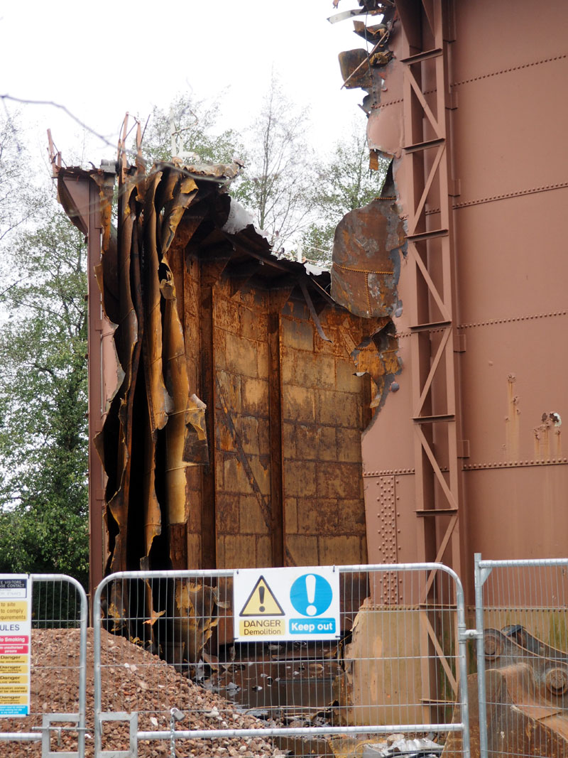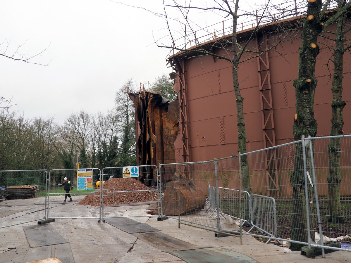 With the bulk of the outer skin now removed, the skyline no longer includes the last gasholder built in Bury St Edmunds. (Picture dated 15th January, 2016.) |