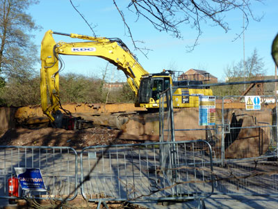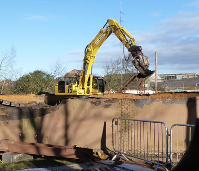 This picture shows the demolition machine in action, now working on removing the remaining outer skin. (Picture dated 13th January, 2016.) |