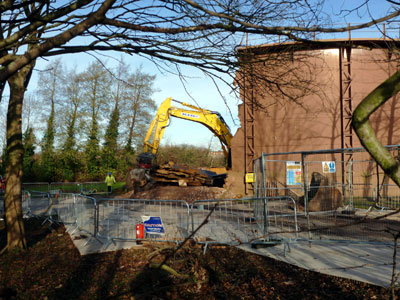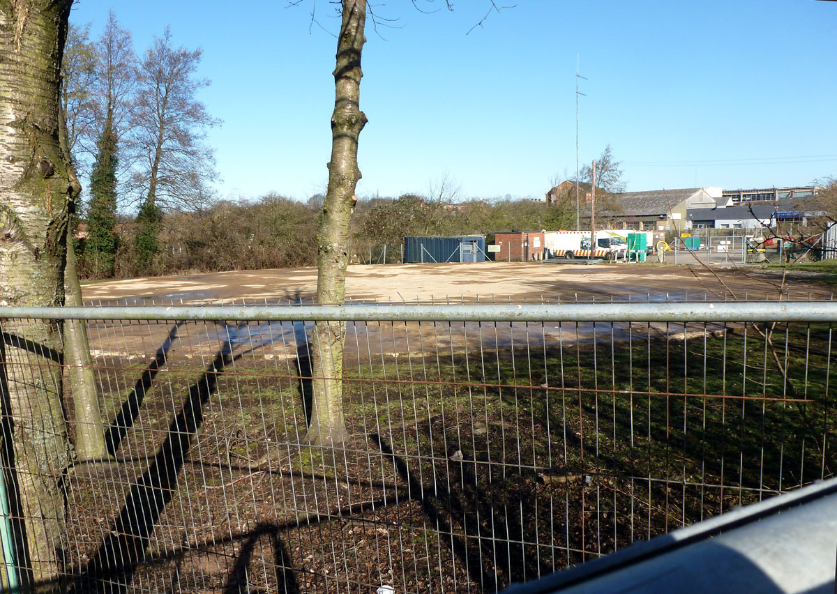 By the following month the base has been tidied up completely and the demolition machine removed. The site is sealed off so that it can only be viewed through the hedge. (Picture dated 19th February, 2016.) |