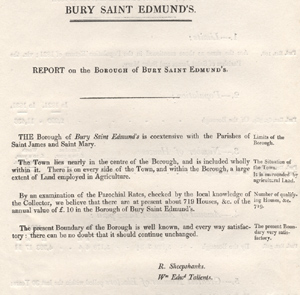 Commissioners' report on the boundaries of Bury St Edmunds - "every way satisfactory".