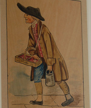 Moyse's Hall contains several Bunbury prints and drawings. This picture of Lotty Long is rather less grotesque than many of Henry Bunbury's caricatures. A street trader, she sold buns, gingerbread and mince pies around Bury. |
