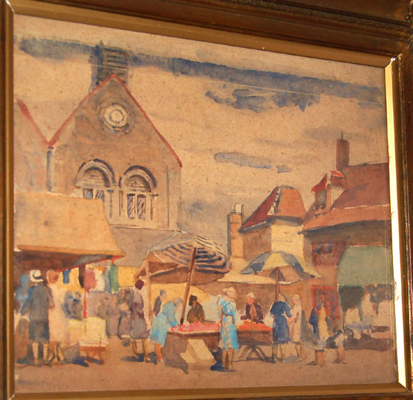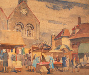 This picture by Rose Mead is one of several pictures of Bury's market painted by Rose Mead. |