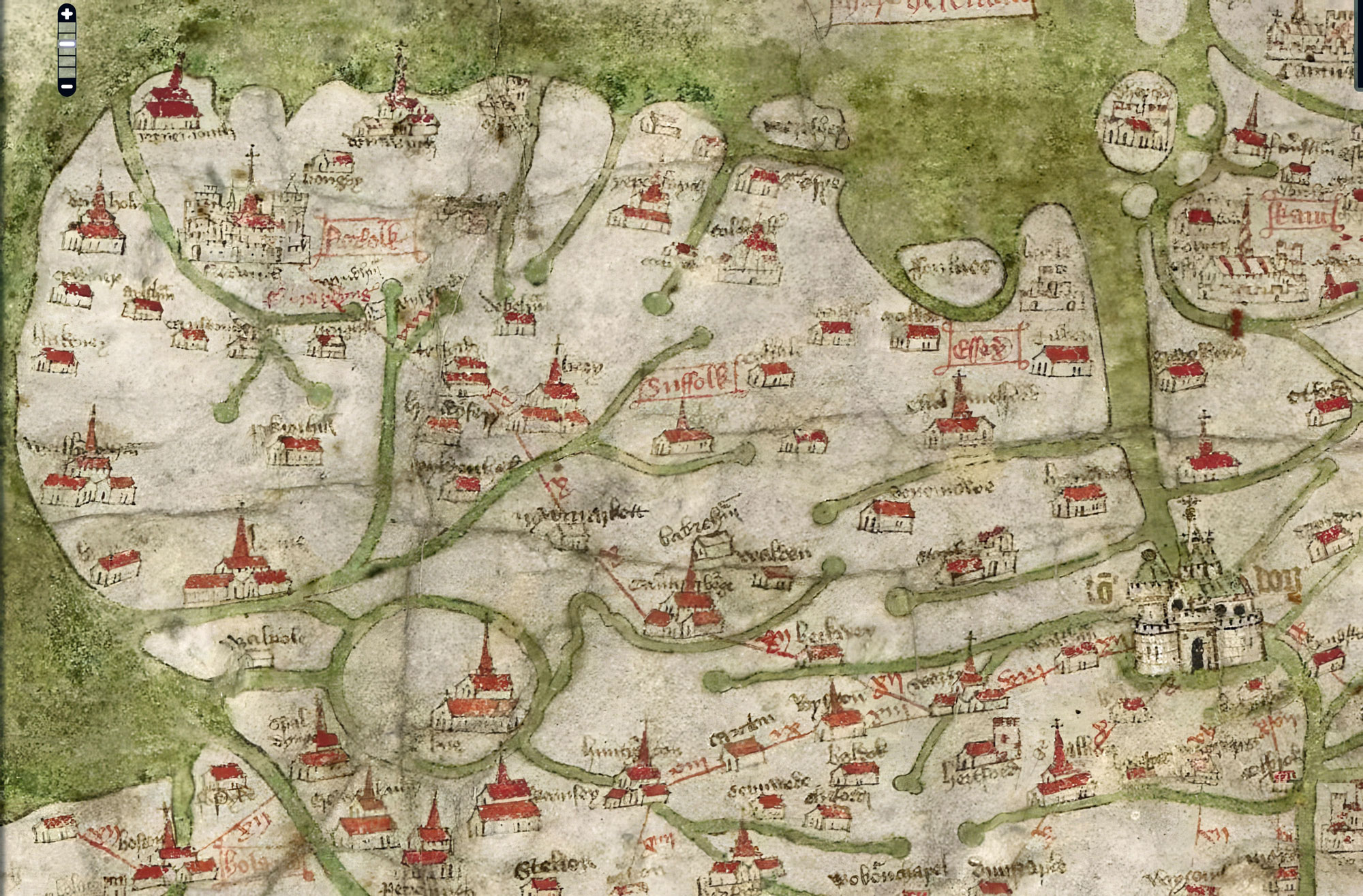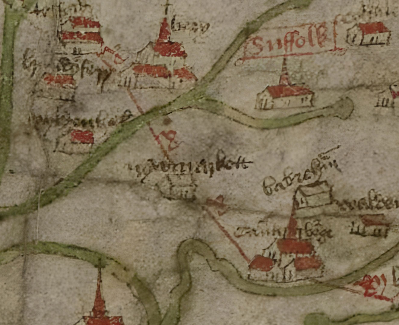 Part of the Gough Map dated circa 1400 The red route from London passes Waltham Abbey, Ware, Barkway, Cambridge, Newmarket, Bury, Thetford, Attleborough, Wymondham and so to Norwich. Newmarket is spelled "nywmarkett".