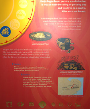 Display Board showing how local clay was gathered, how pots were made, and then fired in bonfires at West Stow. |