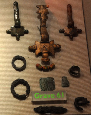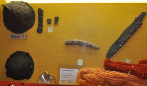 Objects recovered from Mitchell's Hill in Icklingham. This was another Anglo-Saxon cemetery located beside the old Roman settlement, but on its western side. |