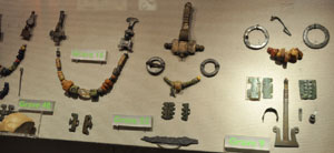 Grave goods from female burials at Eriswell, including brooches, buckles, beads, girdle hangers. These were dug in 1964. |