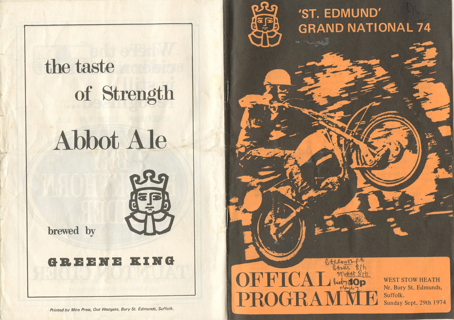 "St Edmund Grand National 1974" is a leaflet in the author's collection |