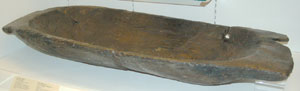 This wooden trough from Badwell Ash is dated to between 500 BC and 50 AD. Wooden objects are extremely difficult to date by appearance. It was a domestic food utensil for probably decades until deterioration changed its use to a rough sled. |