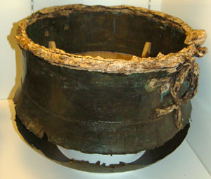 This final object from the Brandon Hoard was a bronze bound wooden bucket or other vessel. Again it was probably a feast object owned by a wealthy local chieftain. This hoard was found during construction of Brandon's Pinefields estate, by Bennett Builders |