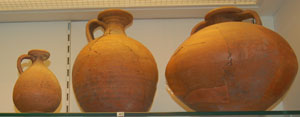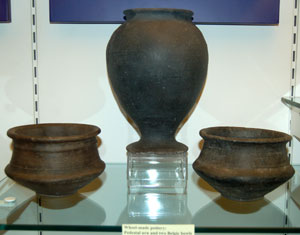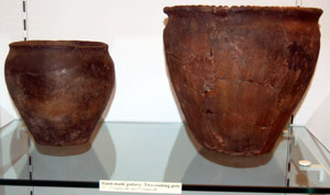 These hand made cooking pots are from the 3rd to 1st century BC, and the 1st century BC. Until about 50 BC all domestic pottery was produced without the knowledge of the potter's wheel. |