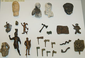 These crowns were probably ritual objects worn by Roman pagan priests. Cult objects such as Hercules clubs are also visible here. |