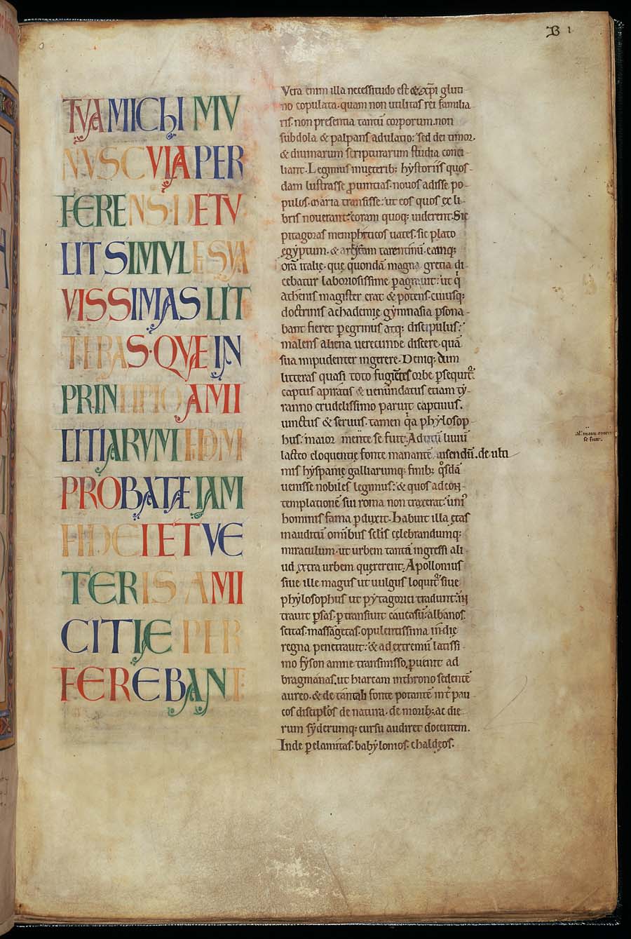 Cambridge. This picture gallery includes all the illuminated letters surviving from the Bury Bible. It does not include the hundreds of text only pages. More information is available in Moyses Hall Museum All images were digitised by Keio University at the Parker Library in 2001. |