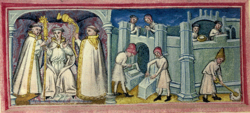 When Abbot Samson died it is believed that he had finished his great project of enlarging the West front of the Abbey Church. He has been not only a great building abbot, but an able administrator of abbey and town, and managing the conflicts between their commercial interests as best he could. Sometimes he had upset the monks in his judgements in favour of the town burgesses, and it was possibly this which initially caused Jocelin to embark on his chronicle.