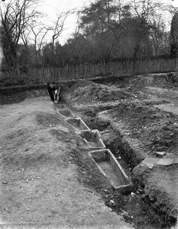 The Bury Chronicle says that on 2nd July, by order of Pope Innocent III England was released from the general interdict which had already lasted 6 years, 14 weeks and 3 days. This meant that England was again part of the accepted world community, but for Bury it meant that Abbot Samson could be reburied within the Chapter House along with his notable predecessors. This was carried out while Abbot-elect Hugh was in France, under the control of Robert the Sacrist. The coffin was removed from the Cloister Garth and re-interred in the Chapter House. These graves were excavated in the early twentieth century following some extraordinary detective work by M R James. Five Abbots were identified from a Register found in Douai in France.