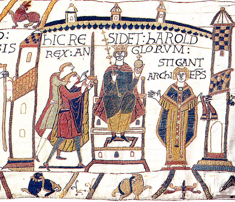 It all began when King Edward the Confessor died on 5th January 1066. The Chronicles say that he committed the kingdom to Harold Godwinson. The Witan had gathered to Westminster for the Christmas crown wearing ceremony, and so were on hand to deal with the succession. Within 24 hours the matter was settled, and Harold Godwinsson was crowned on 6th January 1066 in Westminster Abbey. The ceremony was carried out by Stigand, the Archbishop of Canterbury. Harold Godwinson had been the second most powerful man in England after the King. King Edward had produced no heir to challenge his position, and Harold was on the spot. The other claimants to the English throne were either Norman or Scandinavian, leaving Harold to seize his opportunity. He had been given the title Dux Anglorum, a title created for him by Edward the Confessor. On the death of King Edward, Harold was apparently the choice of the Witan and the people of the south. The north and Midlands under Earls Morcar and Edwin, may not have been so supportive, as Harold, in fact, had no royal blood.
