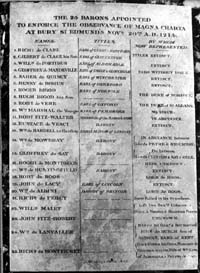 It should also be noted from the description of the Feast of St Edmund shown under 1213, that a gathering of nobles at this annual event was a matter of routine, and not something requiring undue comment. This does not rule out the possible attendance of a group of nobles at an earlier date in the year.