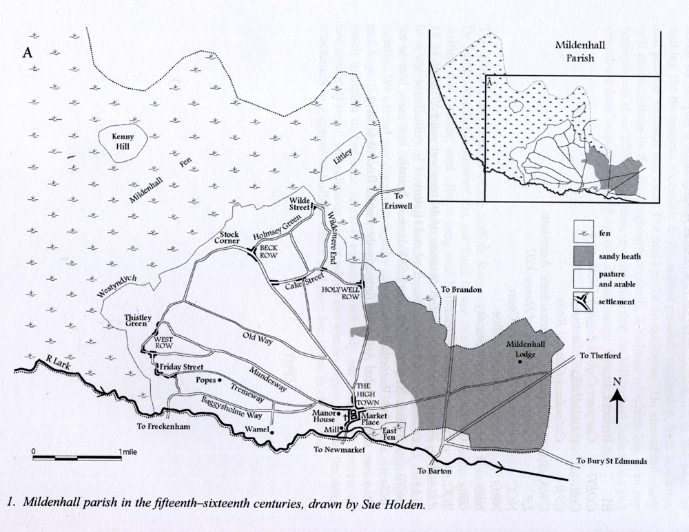 Most of the town now apparently belonged in one way or another to the abbey. We know that in later years there were some land holdings within the town which were owned by external landlords. These included the Manor of Maydewater, in the area known today as Maynewater Lane. This was made part of the Honour of Clare, and a smaller holding belonged to the Manor of Lidgate. However, it is unclear when these landholdings were ceded to outsiders. There will be no mention of these in the Domesday Book.