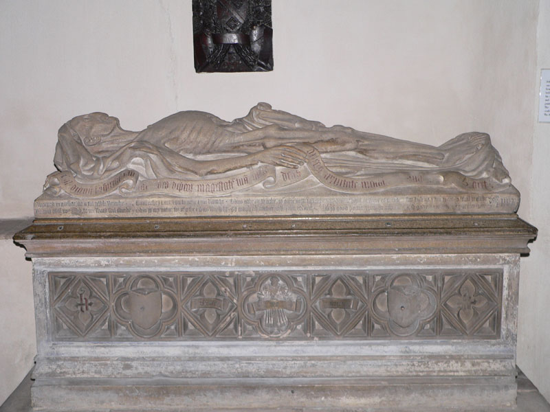 He was buried in St Mary's church in Bury St Edmunds. His monument stone was in the south east part of the chancel. All that remains of his inscription is as follows: