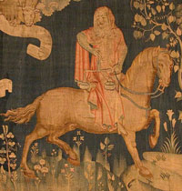 At some period in the early thirteenth century, Mabel of Bury St Edmunds became one of the most famous needlewomen in Europe. Little is known about Mabilla or Mabel of Bury St Edmunds except that her work is referred to by name in the Royal Wardrobe accounts of the court of Henry III. We believe that the type of needlework for which she was famous was called Opus Anglicanum or English work. It was used for ecclesiastical vestments, altar frontals and other ceremonial purposes and was thus richly worked and expensive. The work was sent to other ecclesiastical houses here and abroad as well as to foreign royal courts. Mabel was so highly regarded that she became a King's pensioner, having made many commissions for Henry III himself. She would die in 1244. Opus Anglicanum was made by both men and women and was highly prized. Today her name is continued by the Mabilla Group who had their headquarters at the Manor House Museum while it was extant, and who supported the textile collections of the Borough.