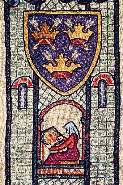 Mabel, or Mabilla, of Bury St Edmunds, died in November, 1244. She was so famous as a maker of English Work textiles that she had often worked for the king himself. In November, 1244 the royal accounts of Henry III recorded that five shillings was given towards meeting the funeral expenses of Mabilla of Bury St Edmunds.