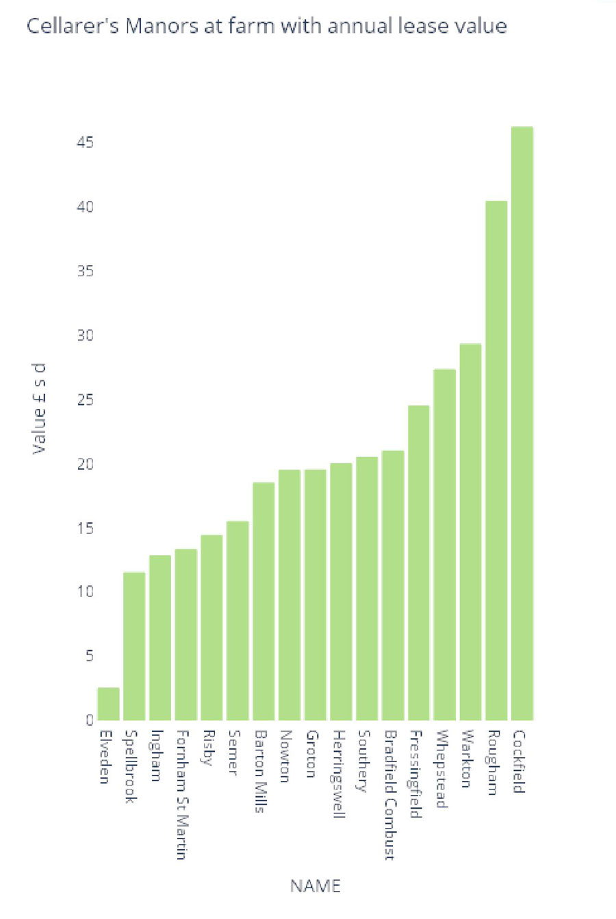 This image is from the title page of the Valor Ecclesiasticus (Church Valuation), commissioned by Henry VIII. It assessed the value of the Abbey of St Edmund at £1,659 a year from its landholdings. It was the richest monastery in Suffolk by far, and the fifth wealthiest Benedictine House in England, after Westminster, Glastonbury, St Albans and Canterbury. In Suffolk the next richest house was Butley Priory at £318 a year, and the remainder had much less. Ixworth had just over £100 a year while Sudbury lived on £20.