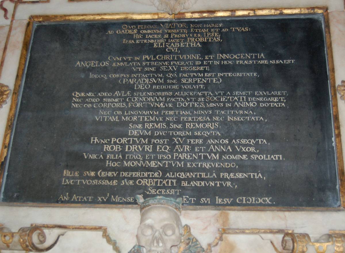 Celia Fiennes visited Bury St Edmunds in 1698, as part of a great circular tour of England from London up to Newcastle and Carlisle, and down to Cornwall, thence returning to London. She travelled the country between 1685 and 1710 and always recorded the trips in her journal. Celia Fiennes was born in 1662 in Newton Toney near Salisbury. Her father was Colonel Nathaniel Fiennes who had fought for Oliver Cromwell during the Civil War, and her grandfather was Lord Saye and Sele. Her mother was strongly non conformist and Celia inherited the family outlook on religion and whiggish politics. Her journal was written partly for her own record, and possibly with an eye to publication. However, although parts of it were published in 1812, the full account was not seen in print until 1888. An improved and corrected edition was published in 1947 by the historian Christopher Morris, and re-published by him in 1982.