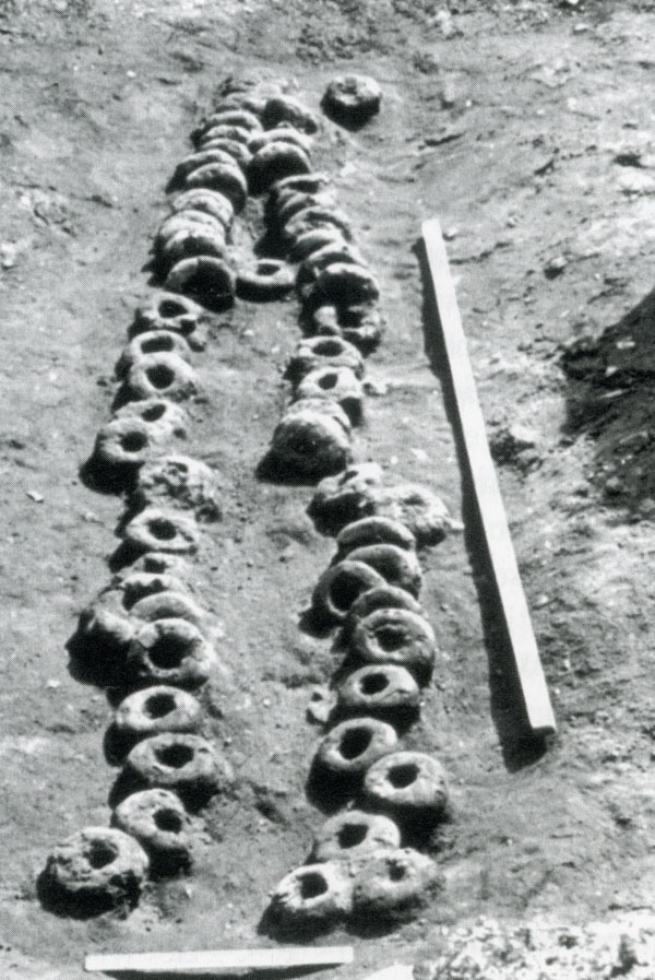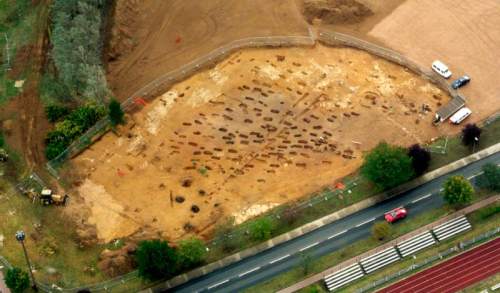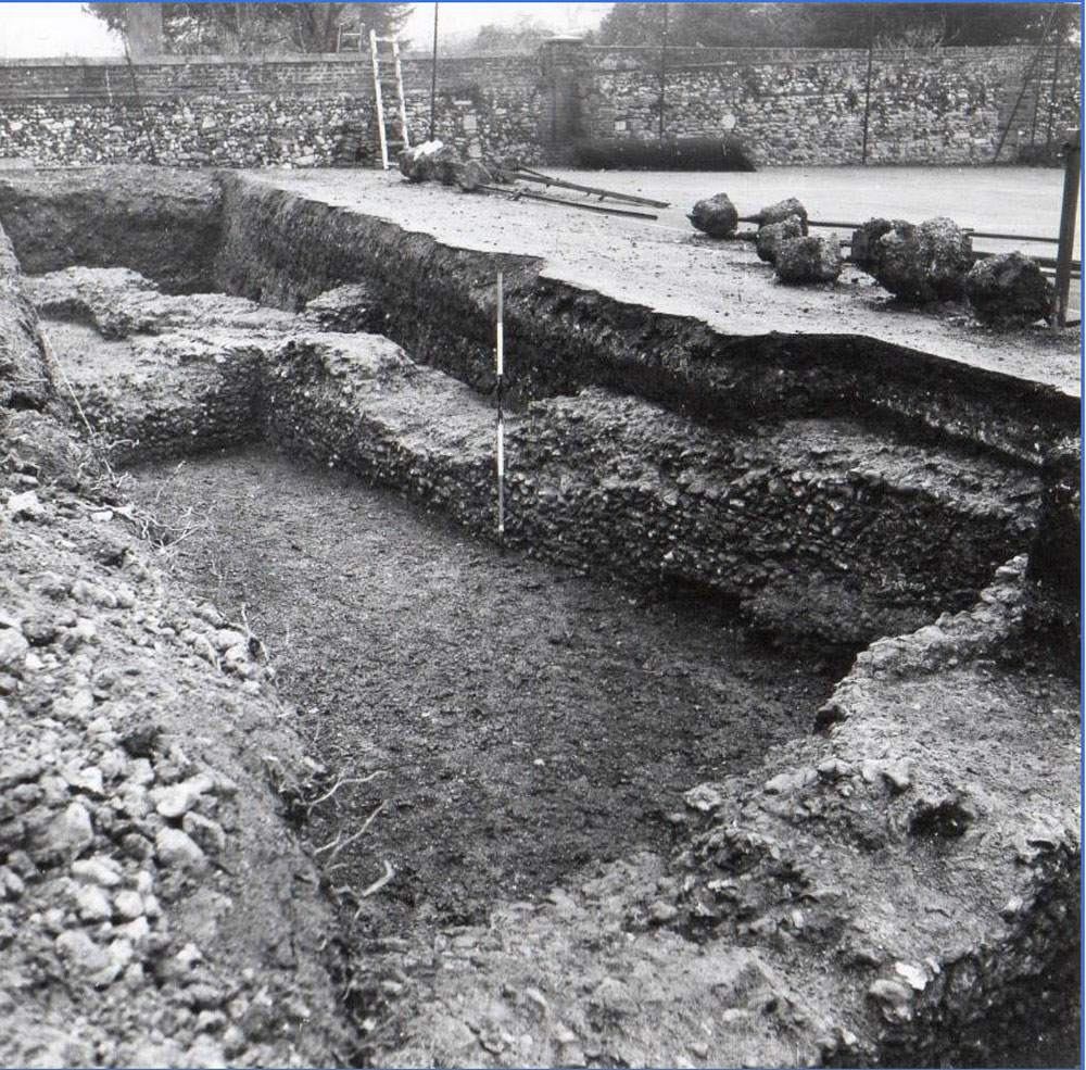 Bury St Edmunds had produced no evidence of any occupation in the Roman period, until these excavations in 2000 found some remains off Cullum Road. A ditch was discovered after topsoil was removed which proved to be 1.2 metres deep and 2.5 metres wide which ran parallel to the River Linnet and 100 metres from it. It contained sherds of Roman era pottery from the late 3rd to the 4th century, including black burnished ware and Nene valley ware. Together with animal bones, it represented the first clear evidence of Roman settlement within the area of the town of Bury St Edmunds. (Excavation reference BSE 187.)