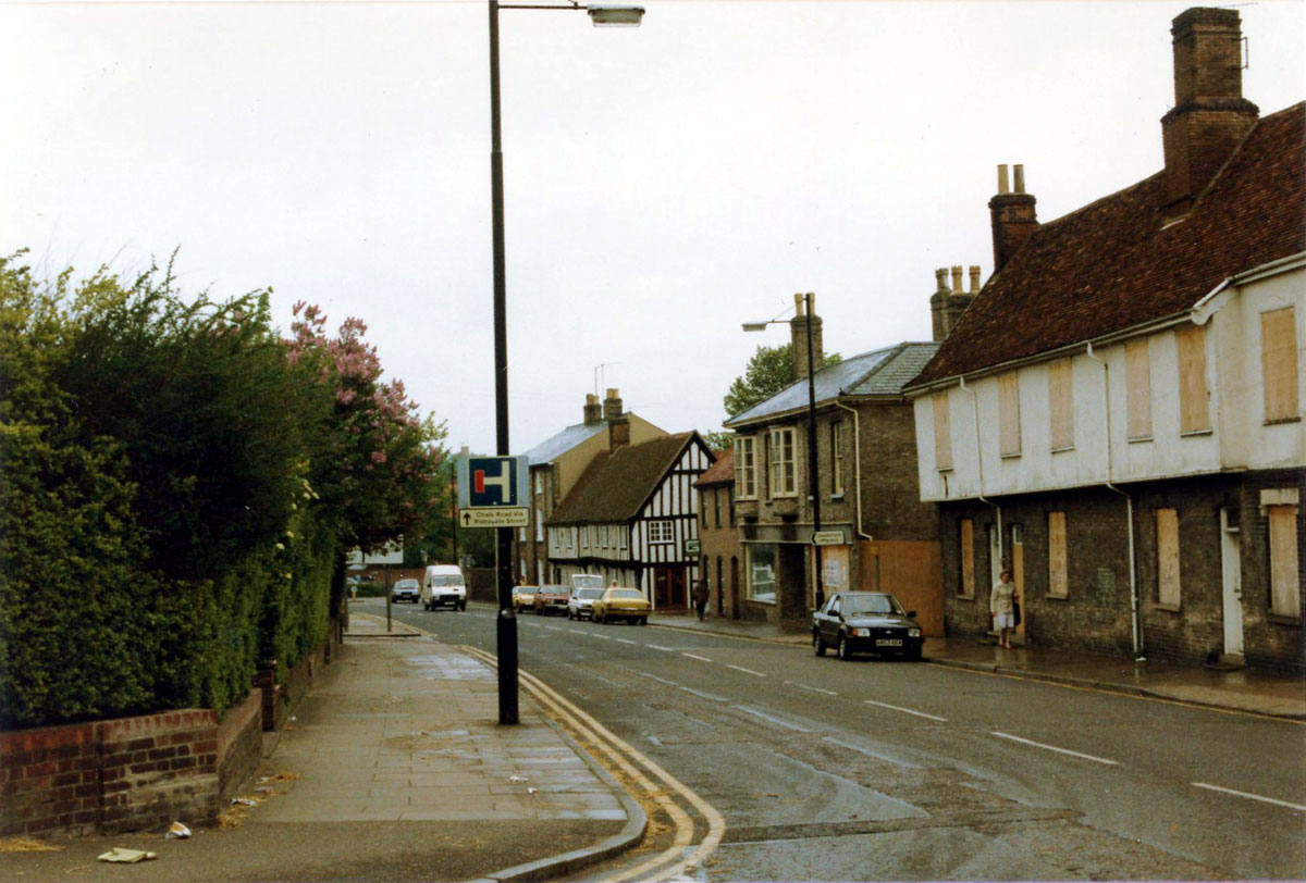 The old pig sheds on the ex-Livestock market site in Bury were demolished and replaced by 103 new car parking spaces. As if to seal the fate of the livestock market, the old Market Tavern, at the top of Risbygate Street, was turned into a wine bar called Number Three. The Market Tavern is traceable back to a document of 1674, and seems to have been called the Wagon until the 1920's.