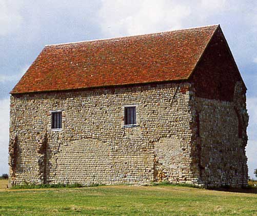 More and more boats were arriving from the Continent. There was pressure on the Saxon's homelands from new settlers from Denmark and Holstein, and flooding from the rising sea levels. One such boat, constructed of larchwood, was found buried at Ashby Dell in Suffolk in 1830, a few miles from Burgh Castle. It may have arrived there at a time when the valley was actually a waterway, for sealevel was rising during the 5th century. Its construction is similar to the Nydam boat, excavated in Denmark. A reproduction of the Nydam vessel is shown here.