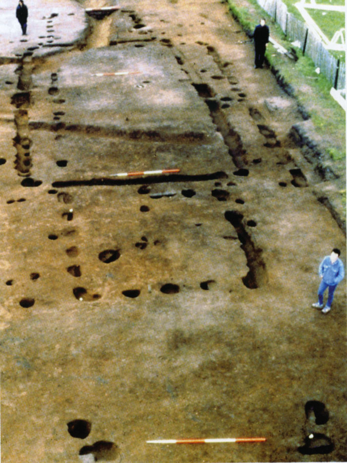 Contour lines outline the knoll on which the village stood. The whole settlement would extend to about 5 acres over its two centuries of existence, and the knoll stood at up to 15 feet above the surrounding ground level.