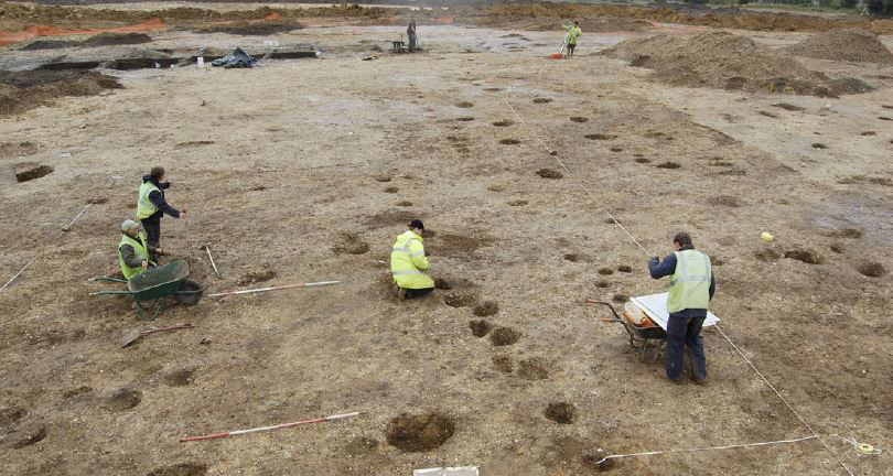 in England. It had a very early cremation cemetery which was eventually dated to 425. The site is extensive but only sparsely occupied, with only 18 SFB s found and identified by 2013. However, the area covered makes it the largest early Anglo-Saxon dig ever undertaken. Bronze Age and Iron Age remains were also found here that indicate a very long history of human usage of this area.