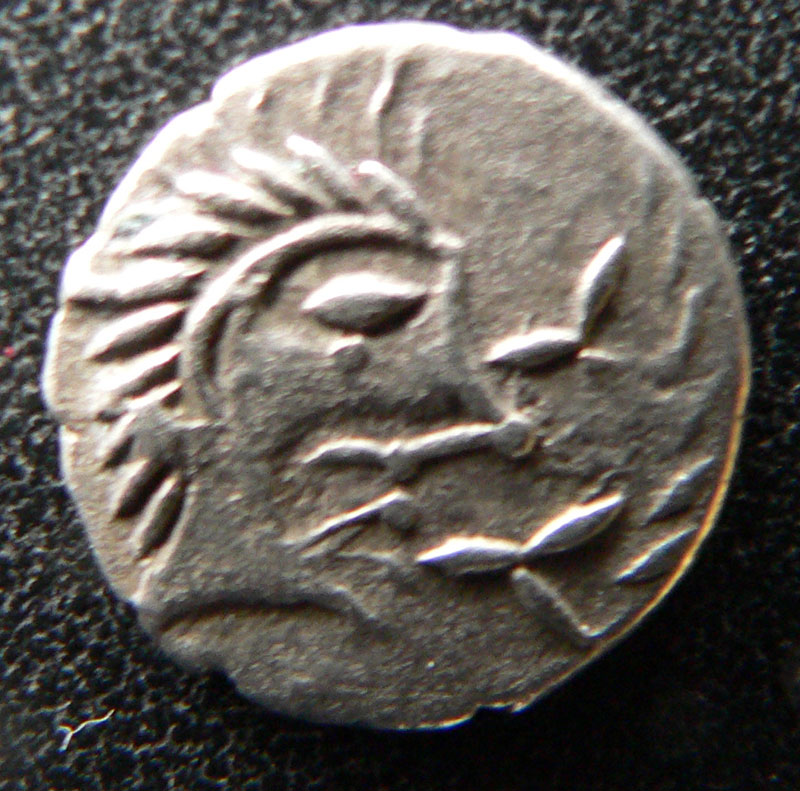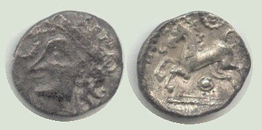 Dating from around this time is a mysterious group of Iceni coins called the Bury type or Bury Diadem type because the first examples were discovered around Bury St Edmunds. They circulated widely in Norfolk and Suffolk and may be the earliest Iceni silver coins. They feature a well-styled female head with a complex crown on one side and a well modelled horse on the reverse.