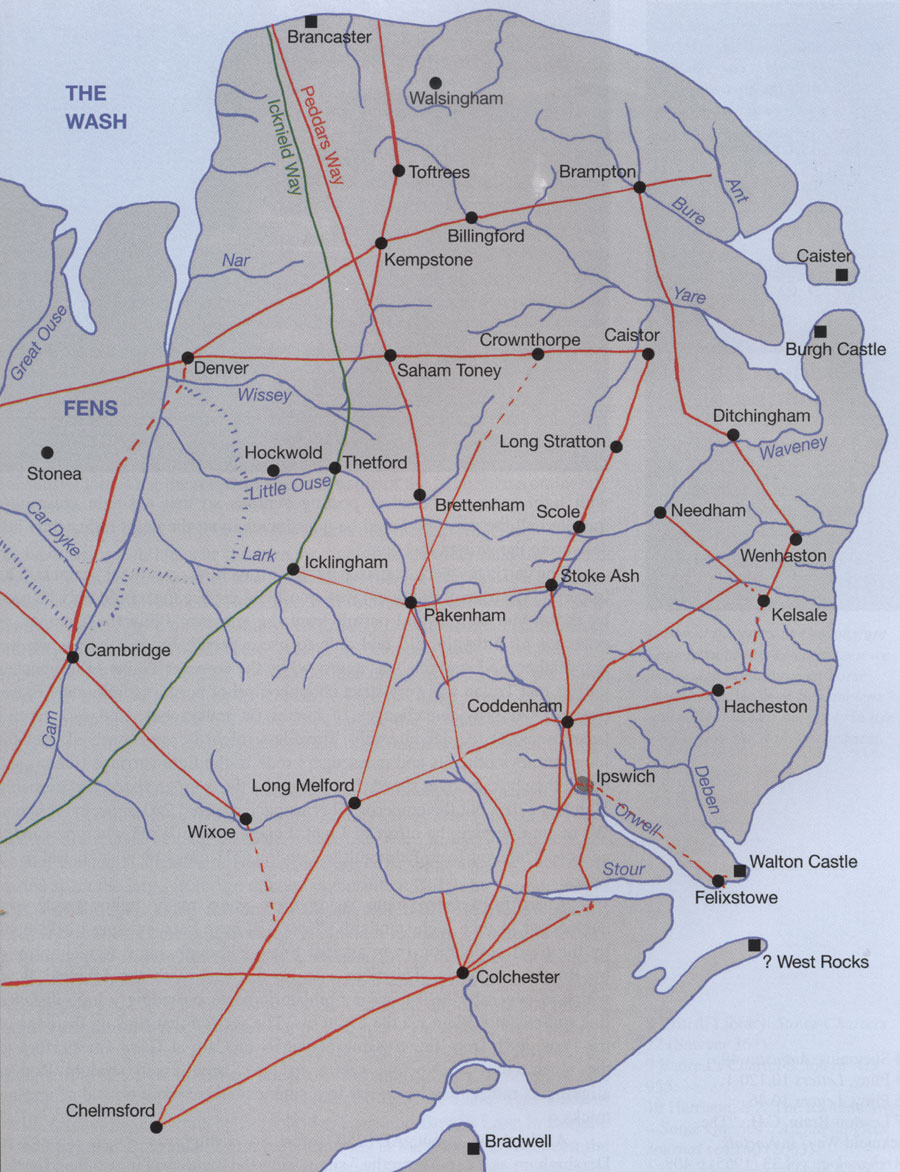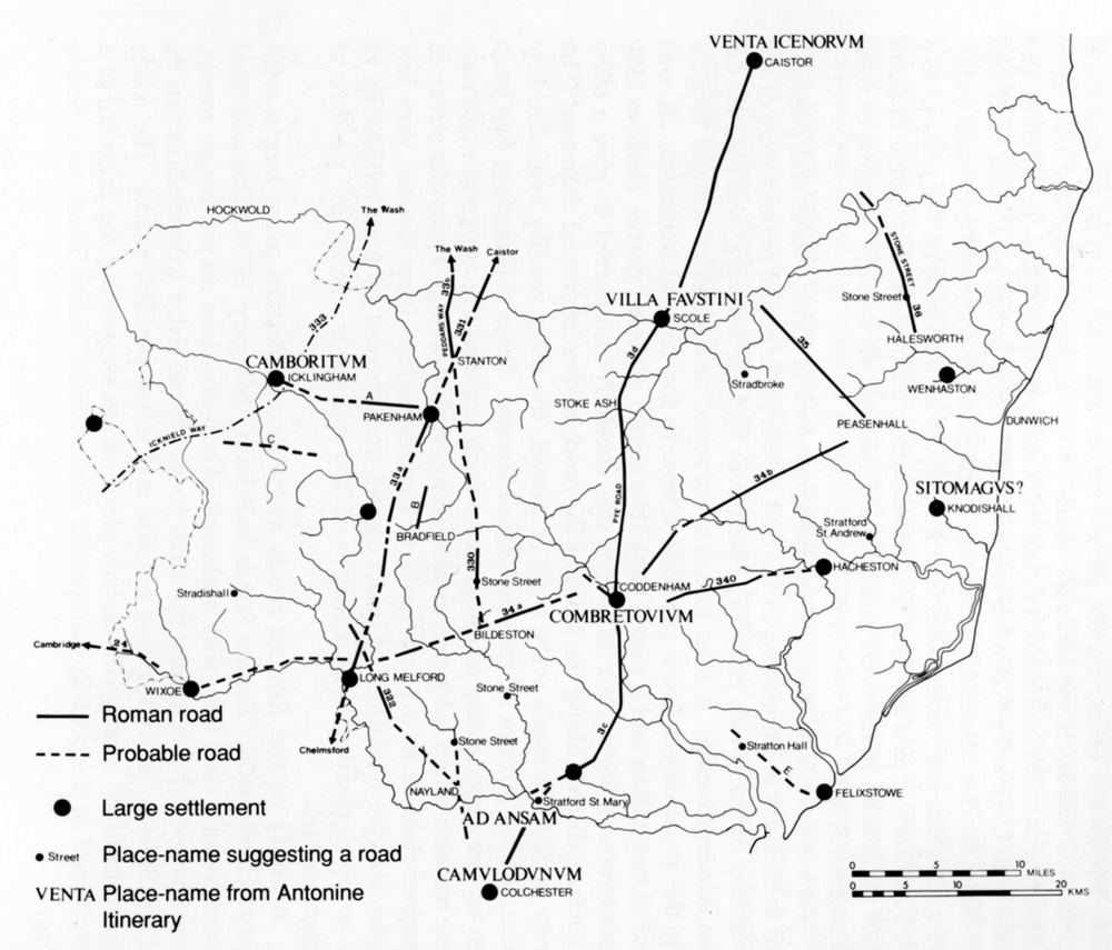 A sprawling half mile long Romano-British settlement possibly known as Camborito had been long established at Icklingham, and a Roman villa has also been identified there. Finds have been made here over many years and four lead water tanks have now been discovered in Icklingham bearing Christian symbols. In 1974 an apparently Christian cemetery was found with a possible Christian chapel.