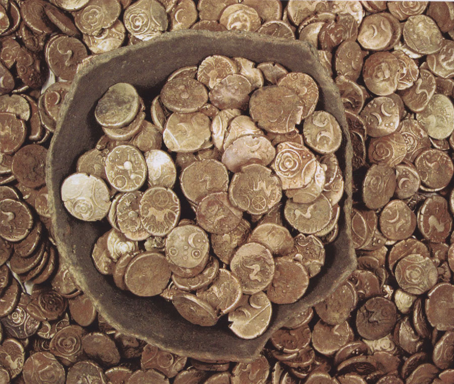 Gold staters from Gaul began to reach Britain. A stater is the name given to the standard Celtic gold coin.