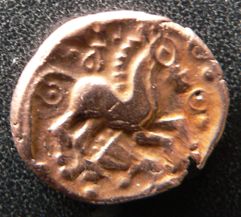 British made coinage was circulating by this time, much of it apparently copied from Roman designs. British coins started to be produced in gold and are sometimes called British A to P. At the same time there were also quarter staters, silver units and bronze units produced.