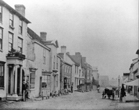 This picture shows the High Street in 1880. St Mary's chuch is visible in the background.