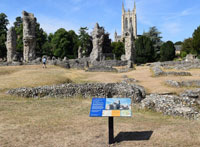 In July, 2022, a new set of information panels to explain the Abbey layout to the public were installed in the Abbey Gardens by English heritage as part of the celebrations of the millennium of the founding of the Benedictine Abbey. The new Heritage Interpretation Panels have been produced in collaboration between English Heritage and the Abbey of St Edmund Heritage Partnership. They were installed in the Abbey Ruins just in time for the Picnic in the Park, another celebratory event and part of Abbey 1000. The 13 panels have been funded by English Heritage but an extra grant from Bury St Edmunds Town Council was secured by the Heritage Partnership to maximise the use of the reconstruction drawings in the scheme.