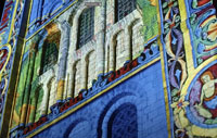 The new digital reconstruction images of the Abbey were researched by Stephen Brindle and digitally modelled by Carlos Lemos, both of English Heritage. The final images were completed by Bob Marshall a graphic artist, working on this project for English Heritage. One visualisation of the abbey at around the year 1400 is shown here.