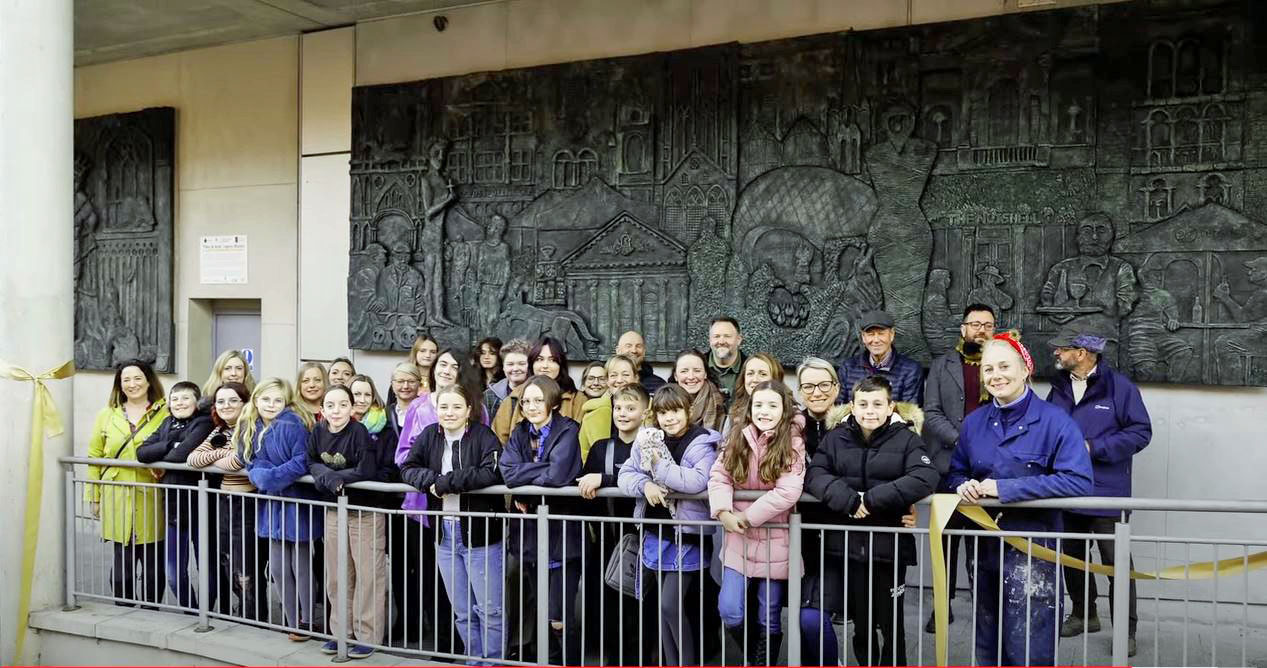 "Created by freelance artist Louise Gridley from Sugi Ceramics, and each measuring 13m square, the sculptural murals were designed to celebrate 1000 years of the Abbey of St Edmund with a ‘Then and Now’ theme. The first panel depicts the story of St Edmund, while the second showcases key landmarks from the town as it is today.