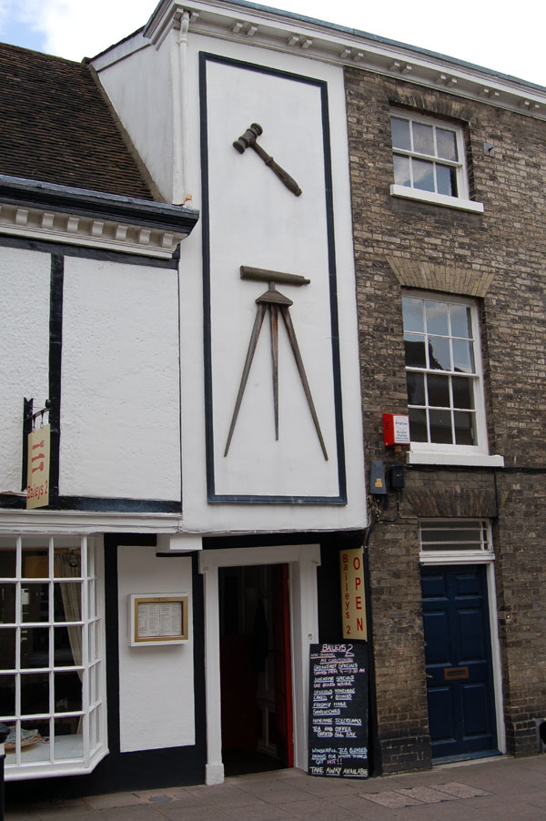Curious ballon motif on front of Jackaman's in Westgate Street, Bury |