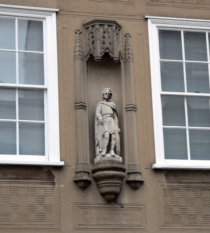 St Edmund erected on Halifax Building Society building. Now an Estate Agents, January's Abbeygate Street/Skinner Street |