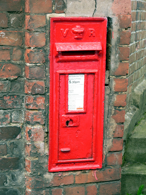 Victorian Post Box which apparently survived until removed by building work in 2011 or early 2012. |