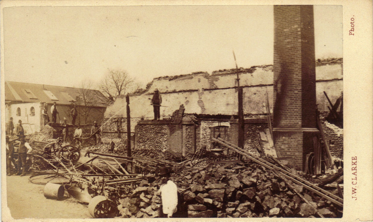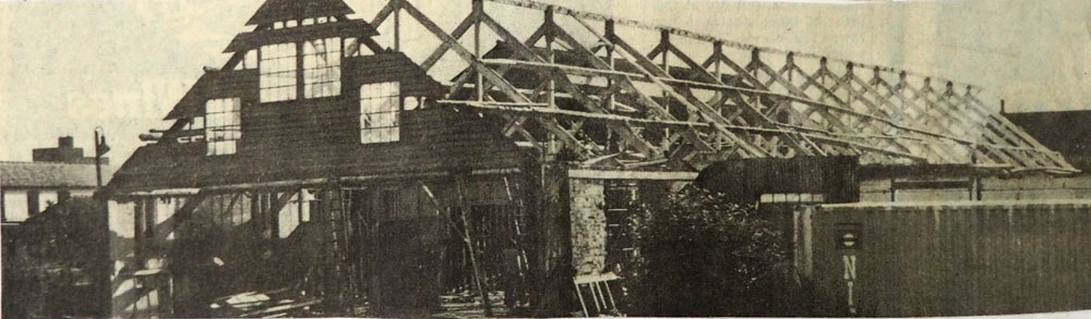 Some of the buildings on the Robert Boby site were being sold off in 1978, and one was dismantled carefully this year. This building dated back to the 1870s, probably one of the new buildings erected after the fire of 1877. It is 100 feet long by 40 feet wide, with its original beams and trusses. The windows were of cast iron. Hundreds of pieces were individually numbered in order that it could be rebuilt elsewhere. It would eventually find its way to the Rural Life Museum at Stowmarket in 1982, and in 1984, it was rebuilt to house a display of rural industry and crafts.