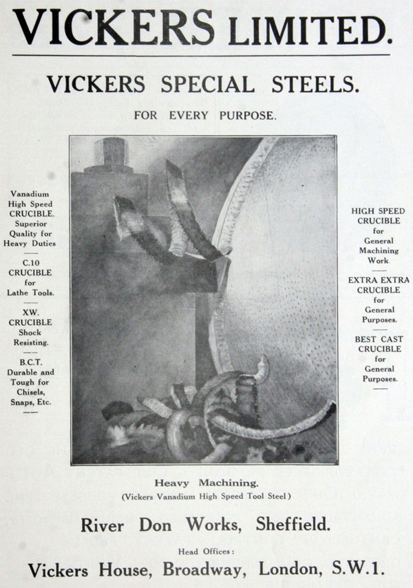 Vickers was a famous British engineering conglomerate that also merged many of its engineering and armaments assets with those of Armstrong Whitworth as Vickers-Armstrongs in 1927. Vickers had a history going back to 1829 at Sheffield, and in 1867 The company went public with a capital of £155,000 as Vickers, Sons and Co and gradually acquired more businesses, branching out into various sectors. In 1868 they were making marine shafts and began to move into ship building. Armaments became attractive when in 1888 they produced their first armour plate, and a first artillery piece in 1890. Armaments were consolidated when, in 1896, Vickers, Sons and Co bought out the Maxim Nordenfelt Guns and Ammunition Co becoming Vickers, Sons and Maxim. In 1911 the company name changed again from Vickers, Sons and Maxim to Vickers. Operations were expanded into aircraft manufacture by the formation of Vickers Ltd (Aviation Department).
