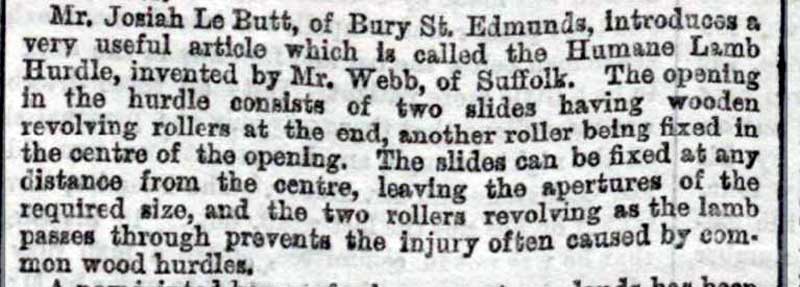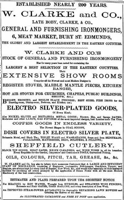 The Bury and Norwich Post of 15th November 1843 carried this announcement from the General Ironmongery Establishment, Meat Market, Bury St Edmund's.