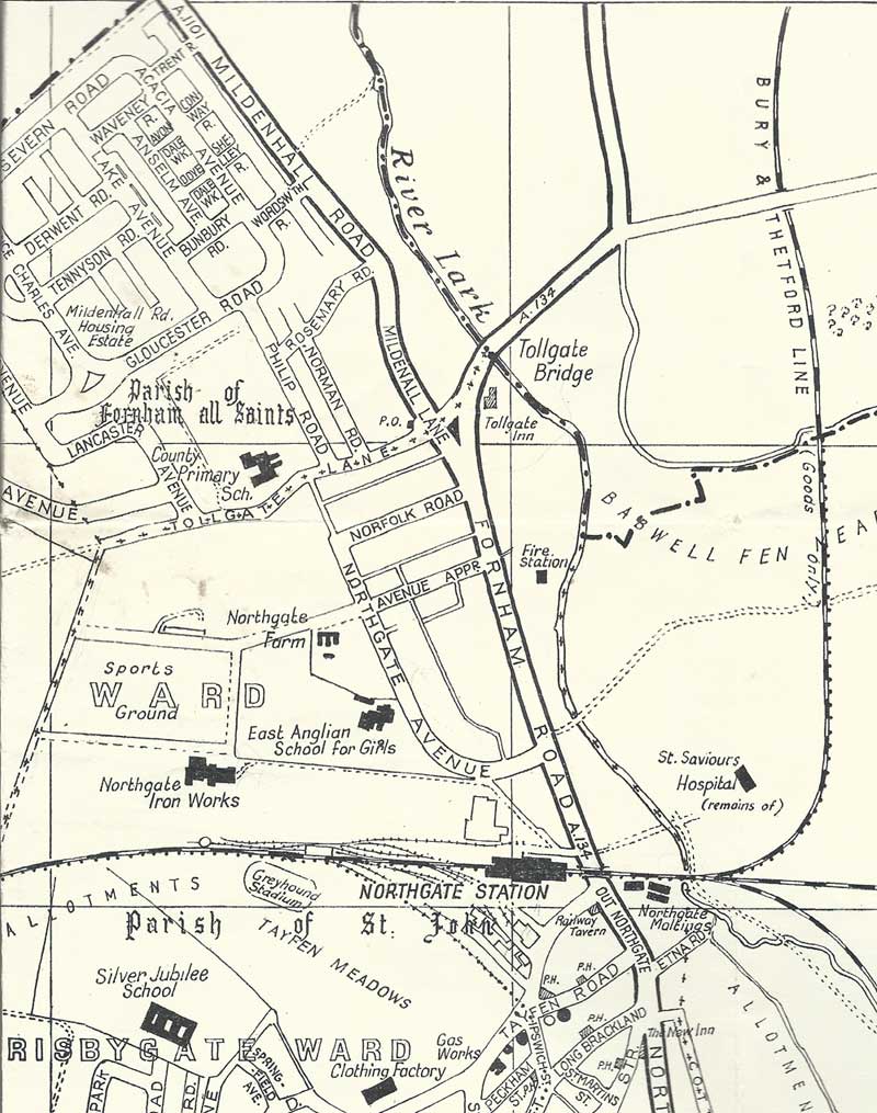 The site is today the home of the Anglian Lane Trading Estate, and the only sign of the old ironworks is some iron slag which was used as ballast on the footpath approach from Northgate Avenue, at the end of Maltings Bridge.