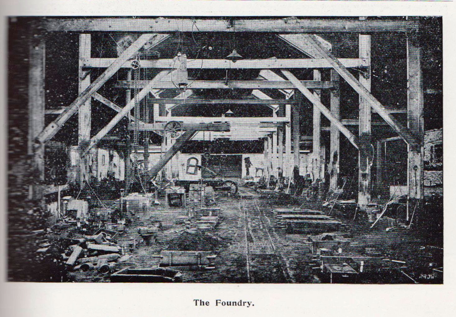 There are very few pictures of the Northgate Foundry to be found. This rather fuzzy 1943 USAAF aerial reconnaissance photo shows the Robert Boby foundry works, apparently in the middle of nowhere. Klondyke cottages are at the top, then the now County Upper School playing field, then the works, then the allotments. Then comes the railway line where they appear to be installing a connection between an existing siding North of the engine shed and the main line near Beetons crossing to form the goods loop line to allow freight trains to take water without obstructing other traffic and / or allow passenger trains to overtake.